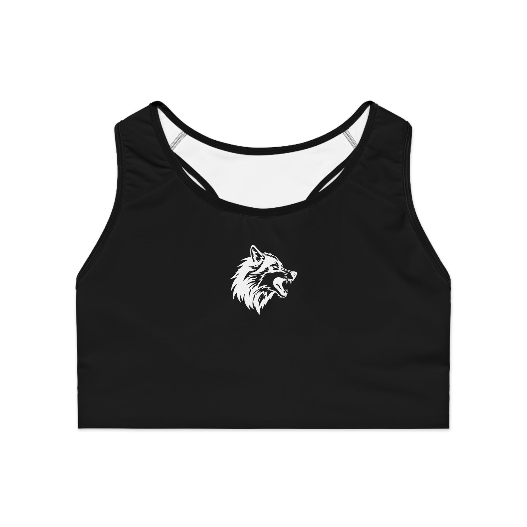 Comfortable WOLVEZ Sports Bra that comes packed with style? This is the one - with an all-over-print that is yours to customize, a compression fit that delivers incredible support during peak activity, and a double-layer front - this sports bra has it all: custom style, support, and 360-degree comfort.